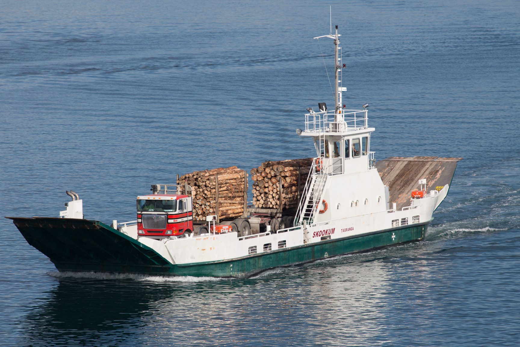 Skookum is a 30-metre roll-on/roll-off vehicle ferry operatng on Tauranga Harbour. Owned and operated by the Tauranga Barge Company, a subsidiary of Port Blakely Ltd., Skookum is crewed by a certified skipper and deckhand, ensuring professional and reliable service. The ferry offers safe, efficient, and user-friendly transport for vehicles traveling between the mainland and Matakana Island.
